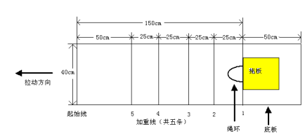 如拖板拉过起始线,比赛成绩为拖板上杠铃片的重量×1.5米。