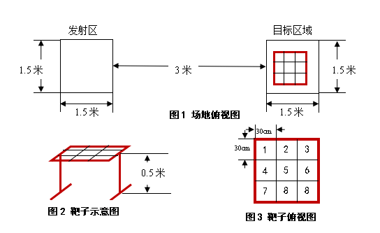 必须按照靶上1至9的顺序依次将球发射进网袋中,不按顺序发射进网袋中的球为无效球。靶上网袋内有效球数值总和加上装置的创造性得分作为参赛队的成绩。