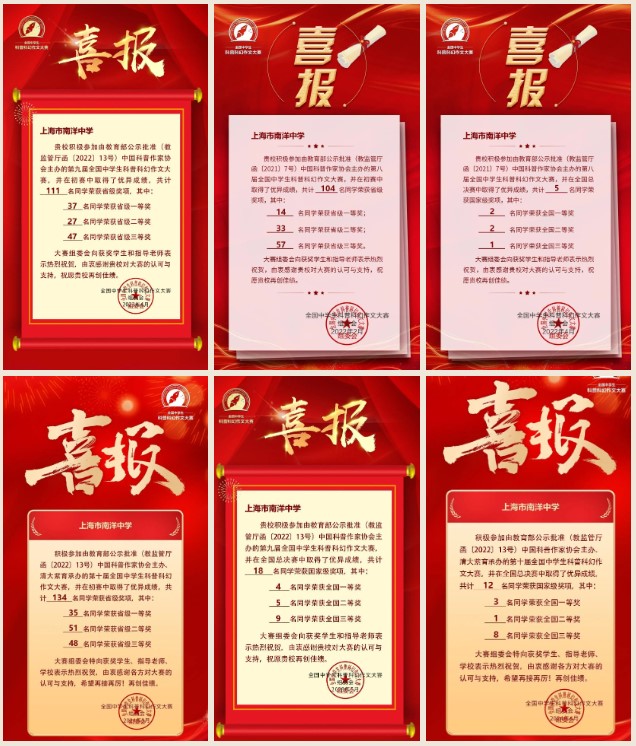 在市区教研员专家的引领下,南洋中学语文教研组重在落实部编版教材写作任务的“再生要求”。在教材写作任务的基础上,根据单元写作目标达成的需要,结合具体的校情、学情,进行第二次设计。其意义在于凸显单元写作重点,指导评改有的放矢,学生学写能有抓手。立足该市级项目,教研组深耕钻研,成效显著:南洋语文教师在市区内进行多次案例分享和汇报、开设多次区级公开课,南洋学子在上海市中学生作文竞赛、全国科普科幻作文大赛等大赛中屡获佳绩。