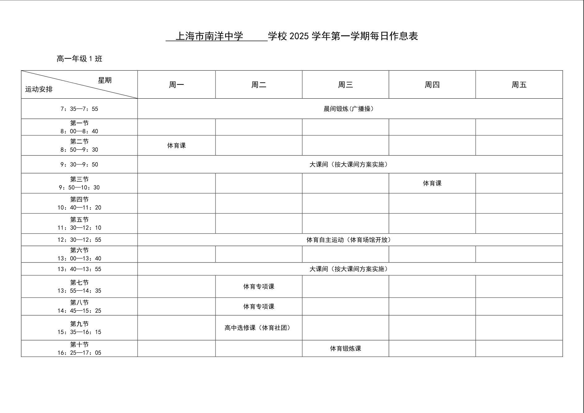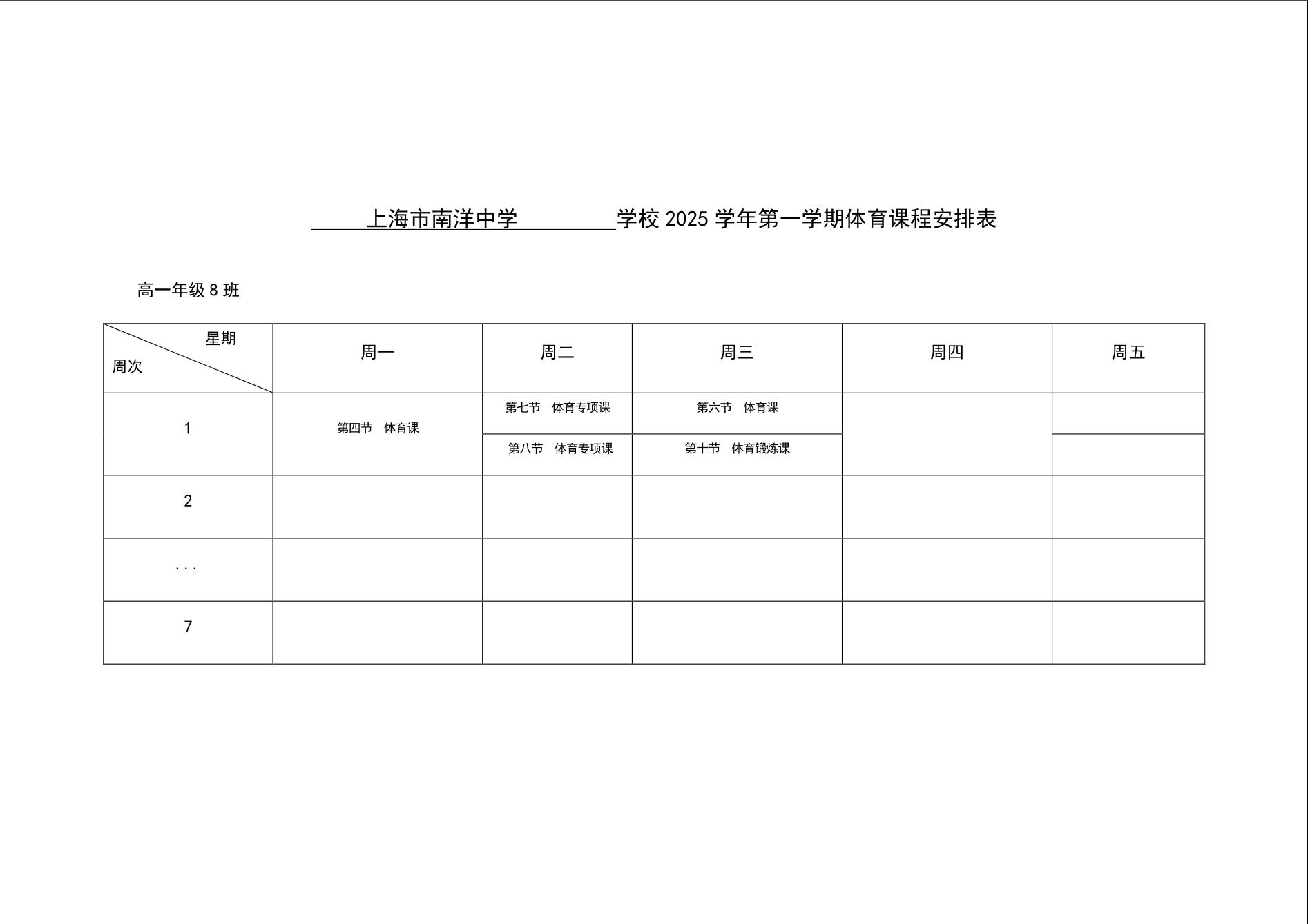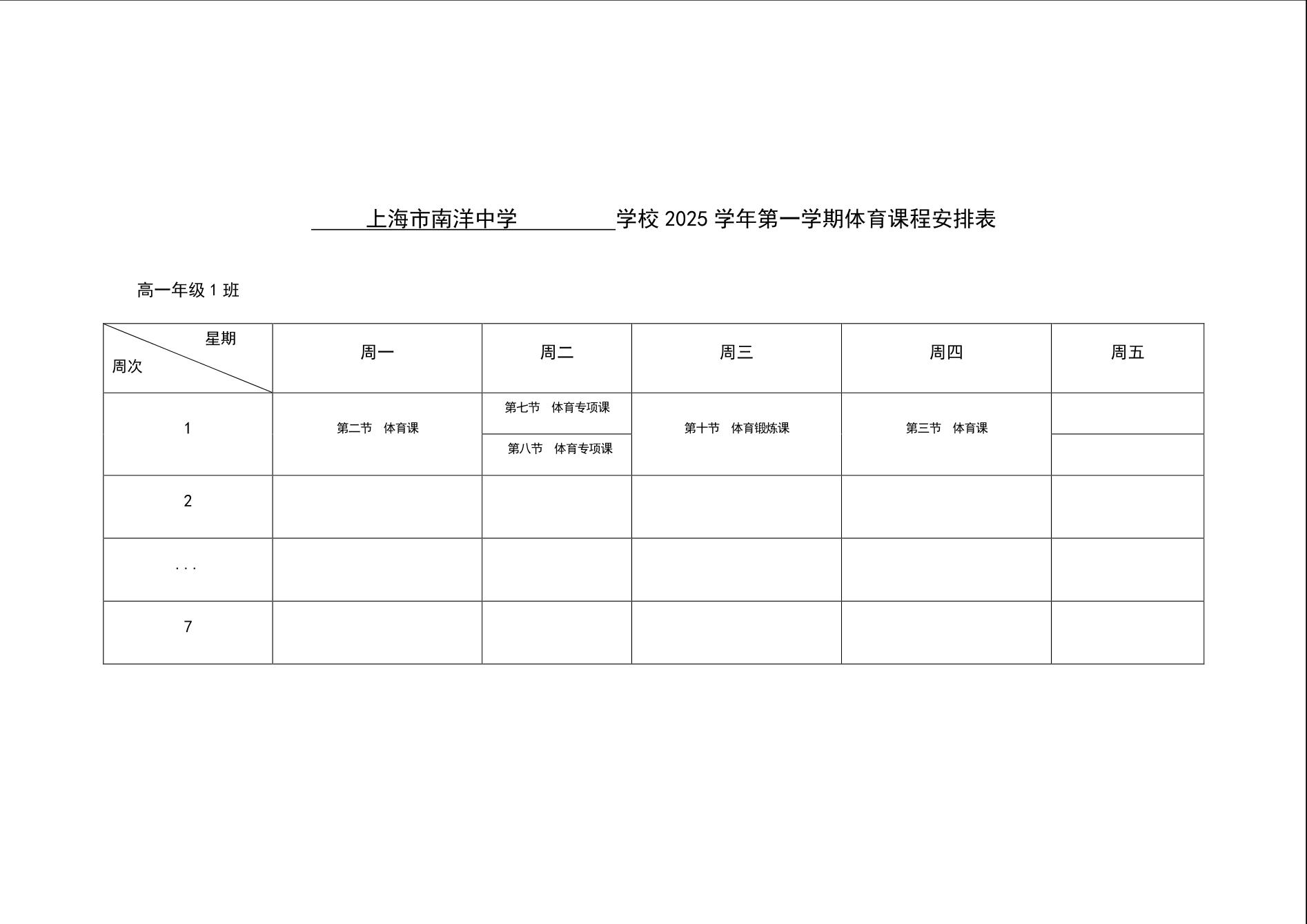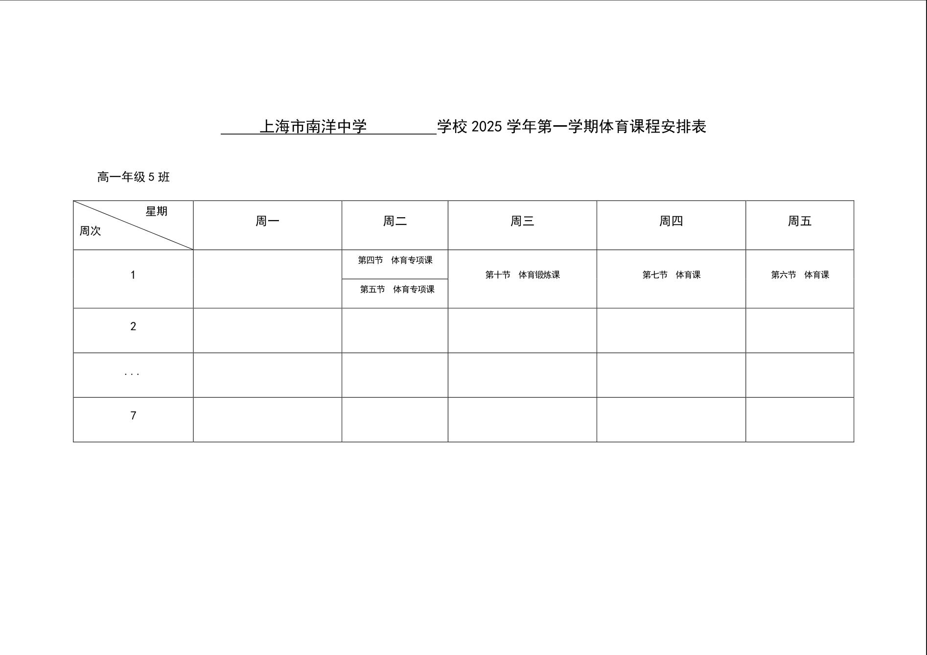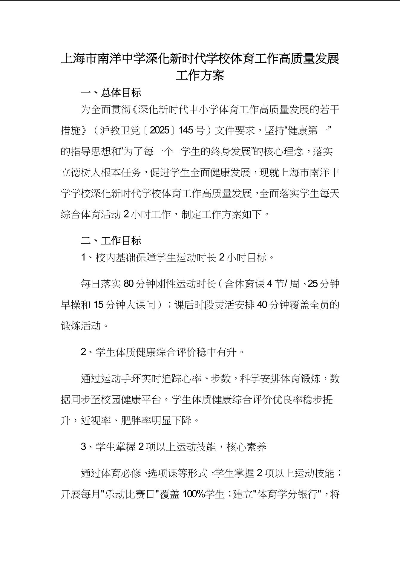 上海市南洋中学深化新时代学校体育工作高质量发展工作方案