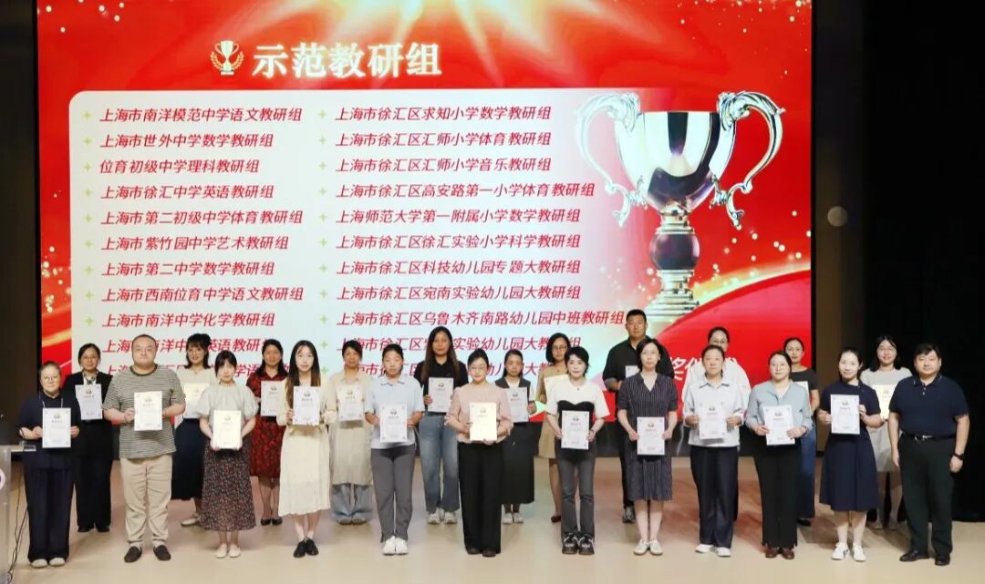 近日,徐汇区第七届示范、优秀教研组颁奖活动顺利举行,南洋中学英语教研组、化学教研组凭借踏实的工作作风与突出的教学成果,双双获评徐汇区第七届示范教研组。这份荣誉,是对教研组内每一位老师辛勤耕耘的礼赞,也是对教研组多年来扎实根基、精诚合作的工作态度的肯定。奋楫扬帆,引领示范锐意创新,开放进取——英语教研组南洋中学英语教研组是一支理念先进、充满活力、专业精湛的团队。教研组以“开阔学生视野、提升核心素养”为己任,致力于为学生提供优质而富有创新性的英语学习体验。在积极团结、友好融洽的氛围下,教研组内的教师们成长迅速。目前,英语组已完成1节教育部基础教育精品课,2项市级青年课题结题,3位老师曾参加京苏沪同课异构活动,4位老师参与空中课堂录制(共12节课),6位老师先后成为名师工作室学员,6位老师获得区级学科带头人、骨干和耕耘、育人奖等荣誉。通过多年的实践努力,英语教研组不断丰富课程内容,为学生提供展现风采的平台。未来,英语组也将持续提升教学与创新能力,不断取得突破。在徐汇区第七届示范、优秀教研组颁奖活动中,南洋中学英语教研组作为四所示范教研组展示代表之一,在经验分享环节进行了精彩的交流展示,为全区教研组建设提供了可借鉴的实践范式。全员共进,深耕不辍——化学教研组长期以来,化学教研组始终以研促教、以教带研,通过研究赋能实现团队共同发展。化学组团队建设成果丰硕,组内教师在各级各类评选中屡获佳绩,多人次斩获全国、市、区级各类荣誉,涵盖基础教育精品课、教学评比、课题研究等多个领域,如市、区教学评比一等奖,区级骏马奖、耕耘奖,国家级课堂教学展示获评全国创新课等等。教研组营造了“骨干引领、全员共进”的专业发展生态,并以课题、评价研究为抓手,形成较系统完整的教学资源体系,发挥了积极的示范辐射作用。南洋中学各教研组将以此次获奖为契机,凝聚共识、形成合力,进一步深化教学研究,强化“研究赋能”;持续锻造高素质、专业化的教师队伍,让教研组成为教师成长与创新的沃土。未来,全体南洋人必将以更坚实的步伐、更深入的探索、更卓越的追求,为区域教育的高质量发展注入南洋力量。