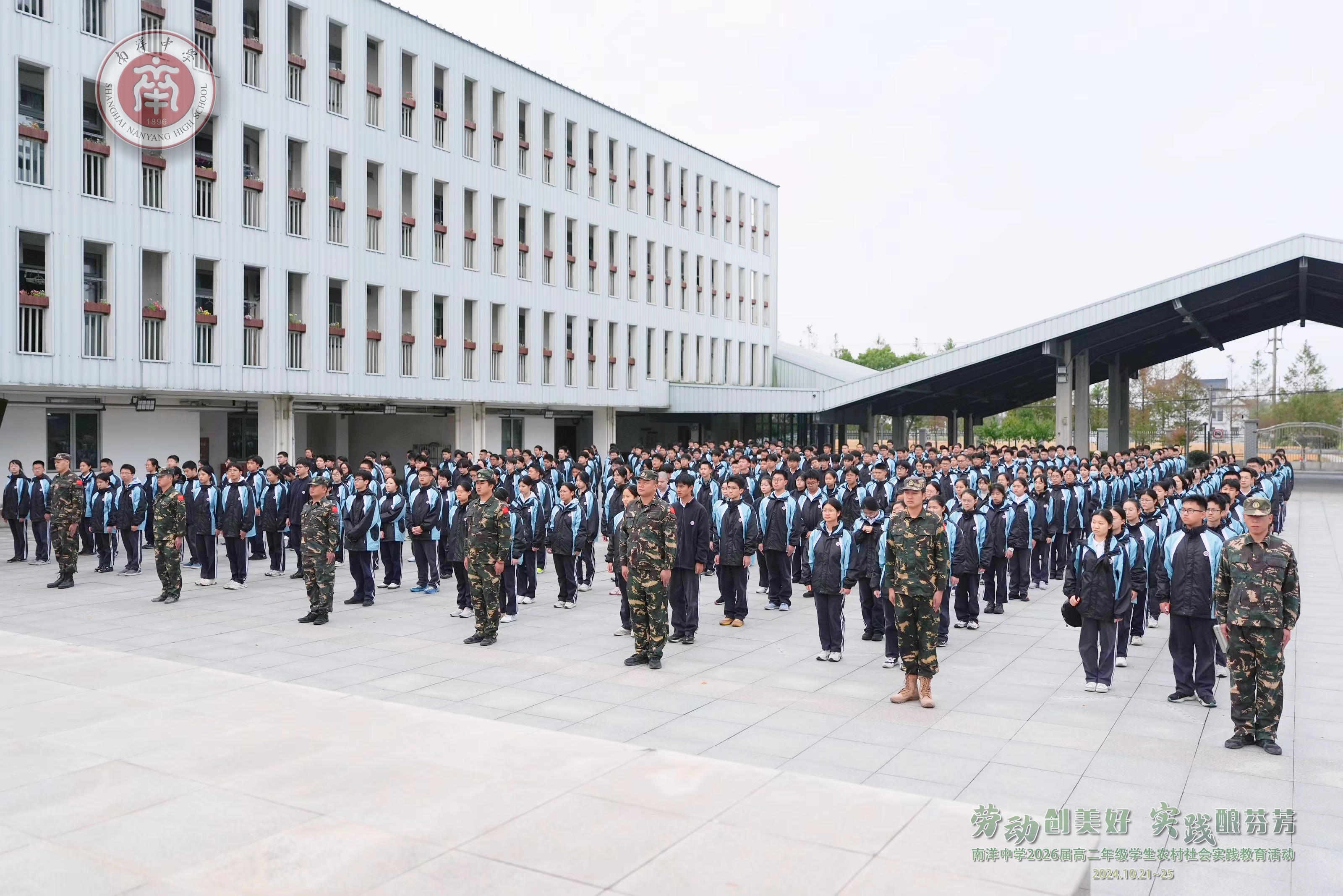 清风徐拂,阳光正好。11月10日,南洋中学2027届全体高二同学怀揣着憧憬与热忱,开启了为期五天的农村社会实践教育活动。他们将亲手触摸泥土的温度、体验农耕的辛劳与乐趣,用汗水浇灌成长蜕变,在青春的画卷上绘就充满朝气与担当的崭新篇章。赴一场田野之约来自高二(5)班的邹博同学作为学生代表,呼吁同学们珍惜此次农村社会实践的机会,在挥汗耕耘中感悟协作的力量,在泥土的芬芳里品味劳动的价值与乐趣,让青春在乡野大地上留下闪光的印记。副校长李瑾为高二学子送上了饱含殷切期许的寄语。李校长鼓励同学们在实践中深入了解农业文化与农耕智慧,感受传统与现代农业的碰撞,在亲身体验中锤炼意志、提升综合素养,汲取成长道路上的精神动力。内务整理,践行规范内务整理环节是本次社会实践中的第一项历练,考验了同学们的生活规范与自理能力。在教官专业且细致的指导下,高二学子们学习了内务整理的各项标准并动手实践操作。同学们以寝室为单位,在互助协作中高效地完成了叠放被褥、清扫宿舍卫生等任务,大家不仅将房间整理得干净有序,更在这一过程中深化了规范意识,锤炼了动手能力与团队协作能力。田间拔草,协作耕耘拔草劳作的号角正式吹响,同学们分工明确、有条不紊地投入到田地管理中。大家分辨着青苗与杂草,拨弄的动作愈发熟练,汗水在暖阳下折射出奋斗的光芒。在这片充满泥土气息的田野上,南洋学子凝心聚力、协同奋战,在一次次的俯身中,真切体会了农耕的辛劳,也收获了劳动的成就感。南洋中学高二学子们的青春身影,在田野间跃动,留下了一串串鲜活的成长印记。在接下来的实践过程中,同学们将继续心怀热忱,脚踏实地,在协作中凝聚力量,在汗水中体悟担当,感悟躬耕实践的奋斗精神。