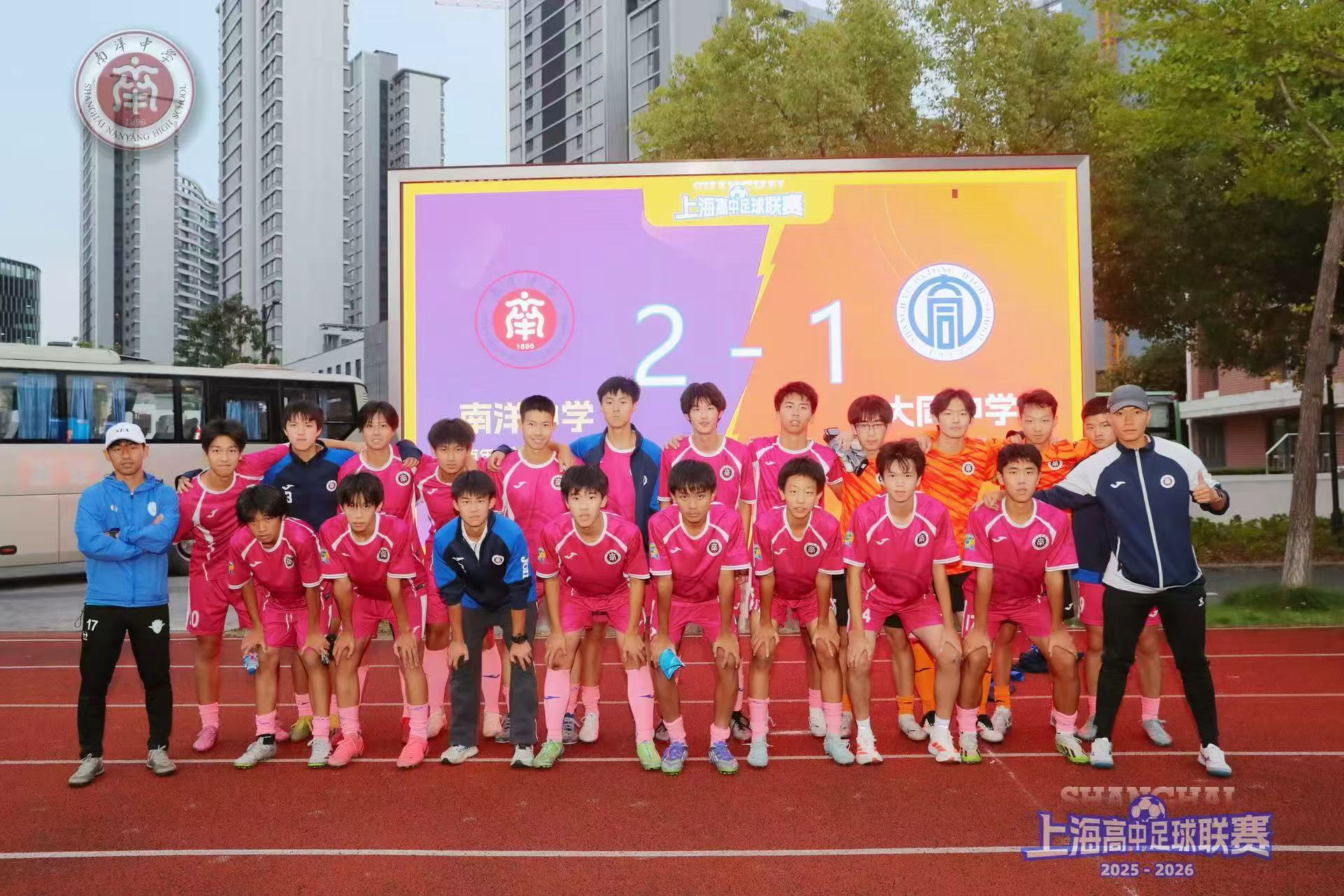 近日,2025-2026上海高中足球联赛男子超级组赛场上精彩不断,南洋中学校足球队在主场迎来两场硬仗,先后对决东昌中学与联赛榜首——大同中学。在学校的全力保障与全场球迷的呐喊助威下,队员们凭借顽强的斗志与精妙的配合,两场全胜,用实际行动诠释了“做好人、读好书、踢好球”的球队理念。首战告捷 汗水与梦想交织10月24日下午,南洋中学校足球队的首次主场焦点战拉开帷幕,球场与看台上气氛热烈,向阳小学、田林四小的小朋友们与南洋学子组成的助威团呐喊不断。南洋中学与东昌中学一开场便展开激烈地攻防,上半场的尾声,21号李玄卿抓住战机率先破门,奠定了领先优势。中场休息时,主教练陈记平老师精准拆解对手的战术弱点,调整人员站位并叮嘱队员稳住节奏、享受比赛。下半场,球队的攻势愈发猛烈。18号乔子恒突破至禁区造点,主罚命中,扩大了比分优势。乔子恒同学在角球时直接攻门,又助力李玄卿反脚推射得分。南洋中学以4:0大胜东昌中学,乔子恒斩获2球2助,李玄卿收获2球,两位高三学子全力以赴、一展风采,成为了球队取胜的关键。队长董贤凯在赛后总结:“起初大家因主场注视略有紧张,但球迷的呐喊让我们迅速进入状态,打出了团队的真实水平。”巅峰对决 团结一心展风采undefined精彩进球瞬间10月31日第七轮赛事,球队迎来终极考验——主场迎战稳居积分榜榜首的劲旅大同中学。作为联赛顶尖队伍,大同中学攻防体系成熟,实力不容小觑,这场对决也被视作“强弱对话”。但南洋中学队员毫无惧色,从比赛开始便展现出“敢打敢拼”的劲头,每一次抢断、传球、射门都凝聚着全队的心血。比赛焦灼而激烈,双方攻防转换节奏极快。队员们凭借严密的防守阵型,顶住了对手的轮番攻势,同时,抓住反击机会主动出击。关键时刻,队伍顶住压力、默契配合,最终以2:1的比分力克强敌。这场胜利来之不易,每一粒进球都彰显了校足球队的坚韧与执着,观众们用热烈的掌声与呐喊送上鼓舞。undefined南洋中学校足球队两次主场硬仗全胜,不仅证明了球队的竞技实力,更生动践行了学校“以球育人、以体育心”的核心理念。南洋足球特色项目自上世纪九十年代起步,已斩获全国校园足球重点布点学校、上海市足球传统学校等多项荣誉。学校通过课程、队伍培养、比赛活动等多种载体,推进体育“一条龙”足球项目的全校普及。同时,学校依托足球“一条龙”布局建设工作,充分发挥示范引领与辐射带动作用,不仅在本校形成了浓厚的足球氛围,更积极与区域内其他学校交流经验、共享资源,推动区域校园足球整体发展。向阳小学、田林四小学生与南洋中学足球队合影在后续赛事中,期待足球小将们继续带着这份拼搏与热爱,书写更多精彩的南洋故事。