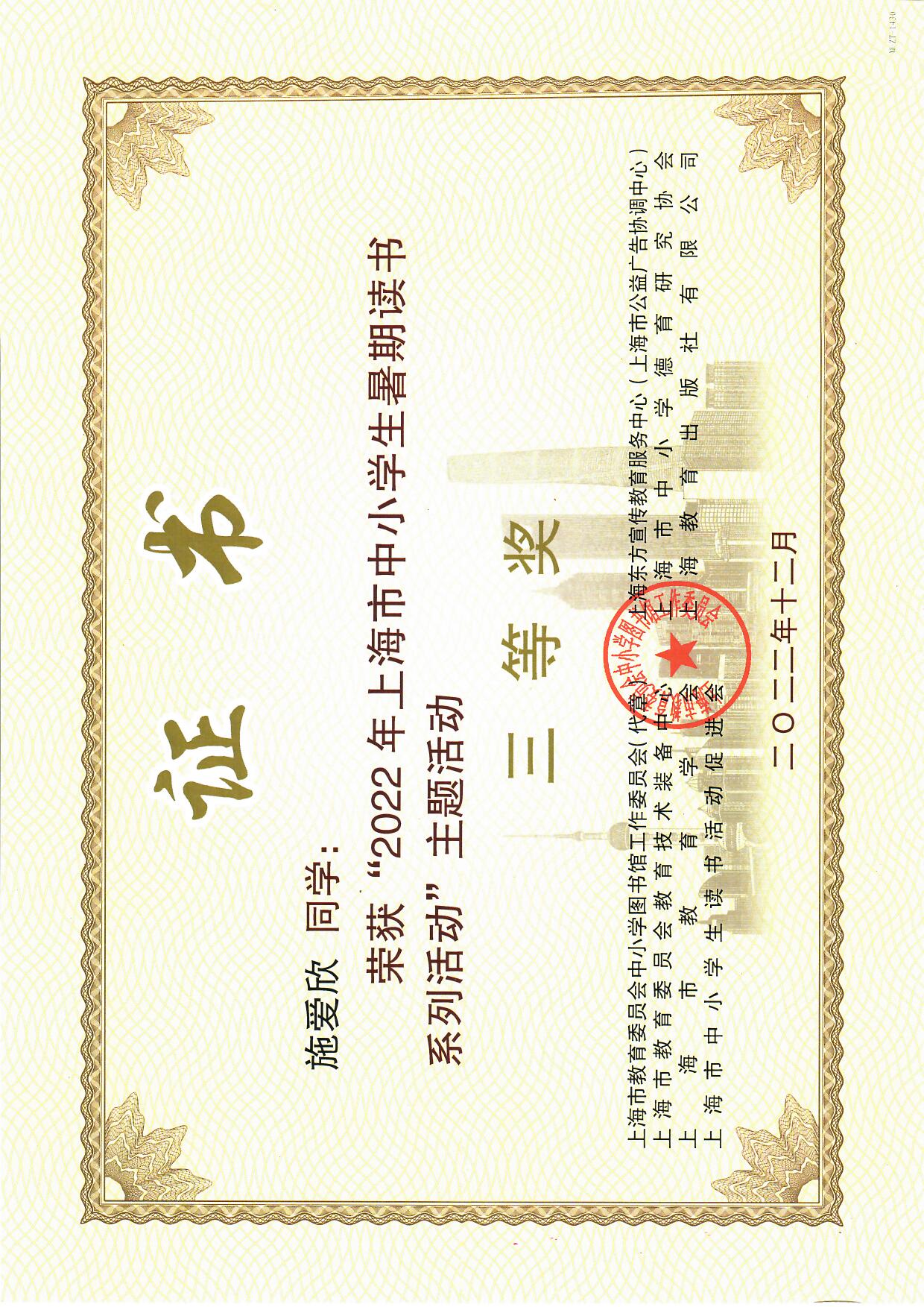 2022年上海市中小学生暑期读书系列活动 获奖情况