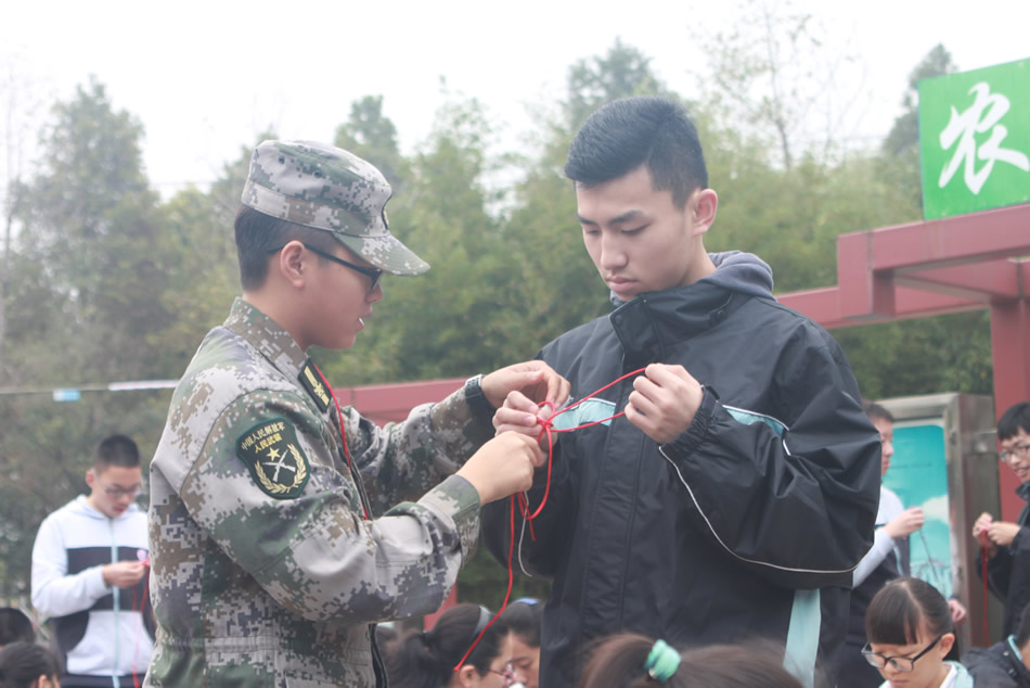 中国结编织与手链的编织是活动中最轻松也是最受欢迎的两个环节。在中国结编织的过程中,同学们仿佛一朝回到课堂,双眼闪烁着求知欲望,并且燃着浓浓的兴趣。大家自动分起了小组,组内讨论或者拥到辅导员身边向她指教。看着红绳线头在手指的掌控下自由穿梭并最终成为一个个精美标志的结扣,同学们都由衷地笑了。这又何尝不是一个课堂,带领我们体会学习的滋味,收获的满足。