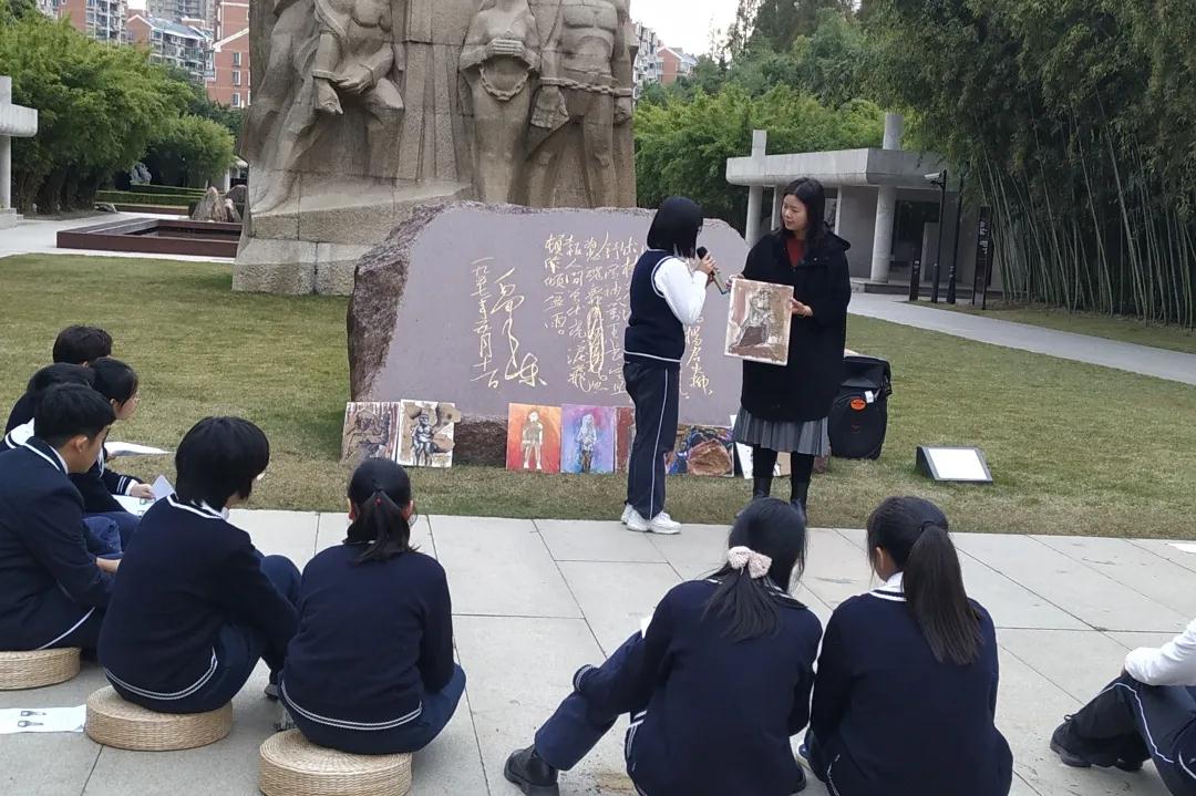 近日,学校美术学科新入职的“0岁教师”谢怡青,在区教研员徐烂老师的指导下,在两类课程教研组长李云老师的帮助下,积极尝试将美术课堂与爱国主义教育、学校的红色基因、馆校合作项目相融合,在学校的共建单位,全国爱国主义教育基地——龙华烈士陵园,开设了一堂现场艺术教学——《烈士陵园瞻仰红色雕塑 综合材料描绘时代印象》。