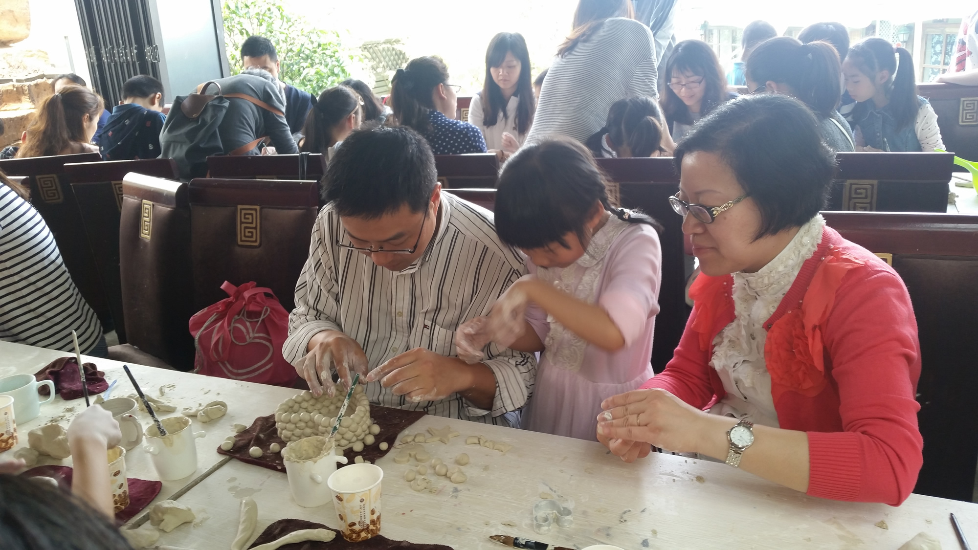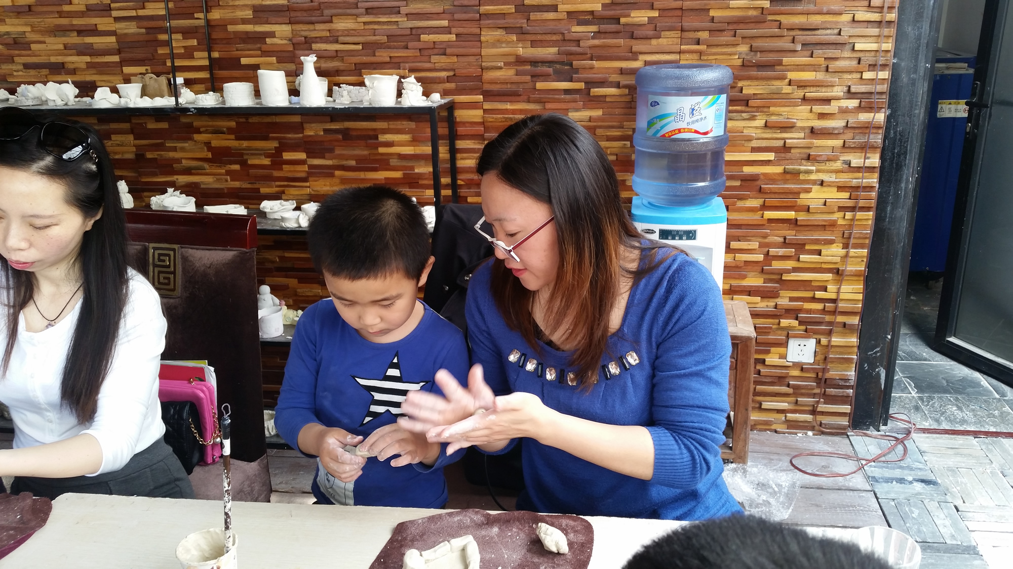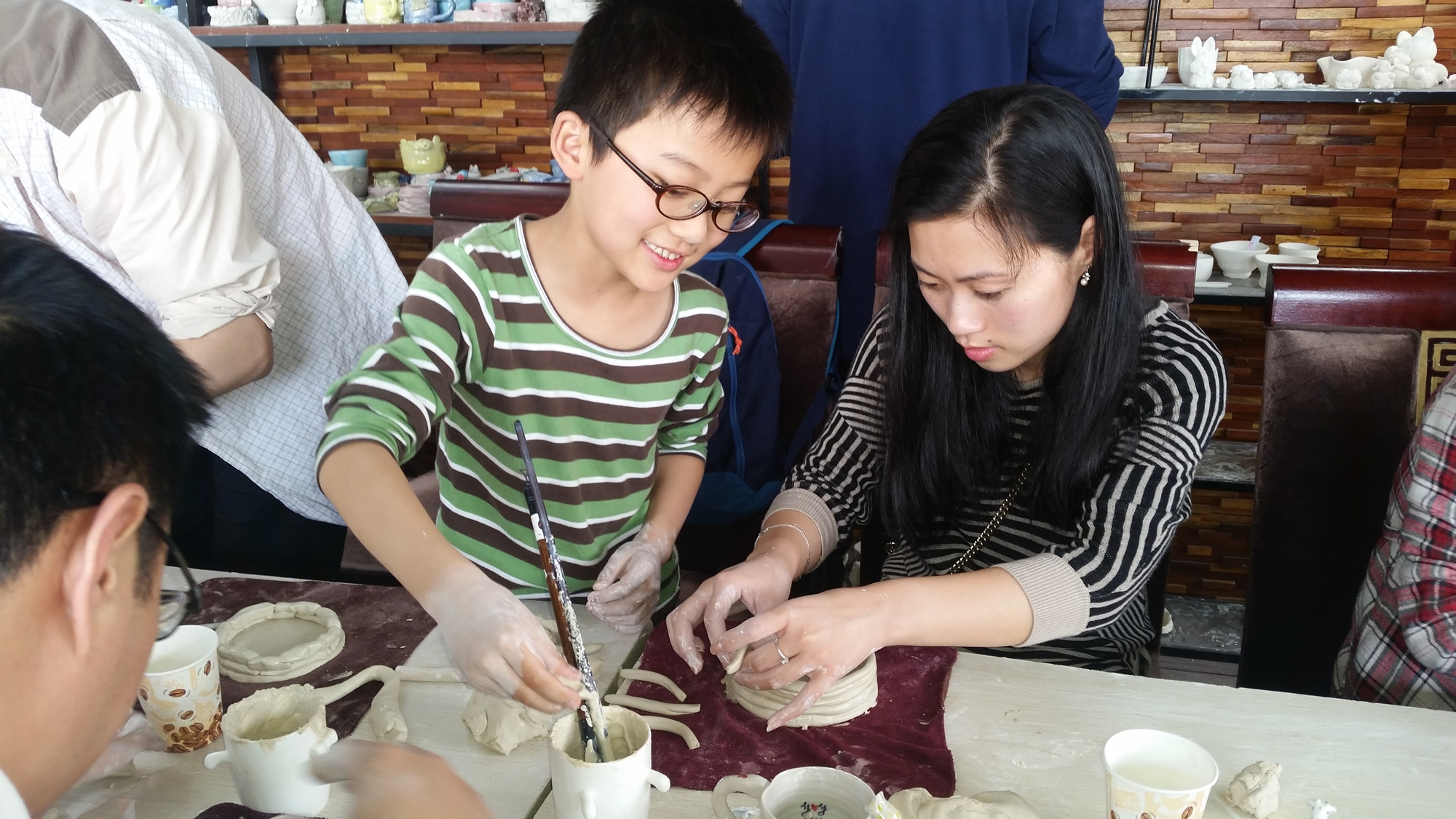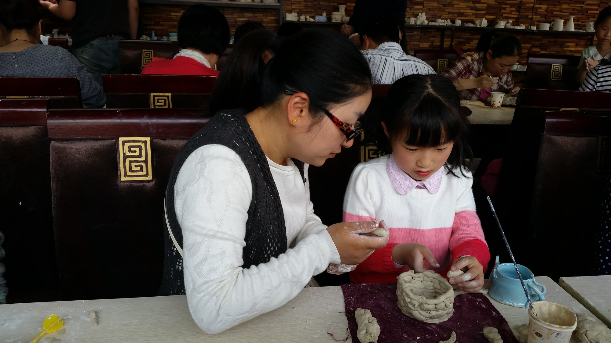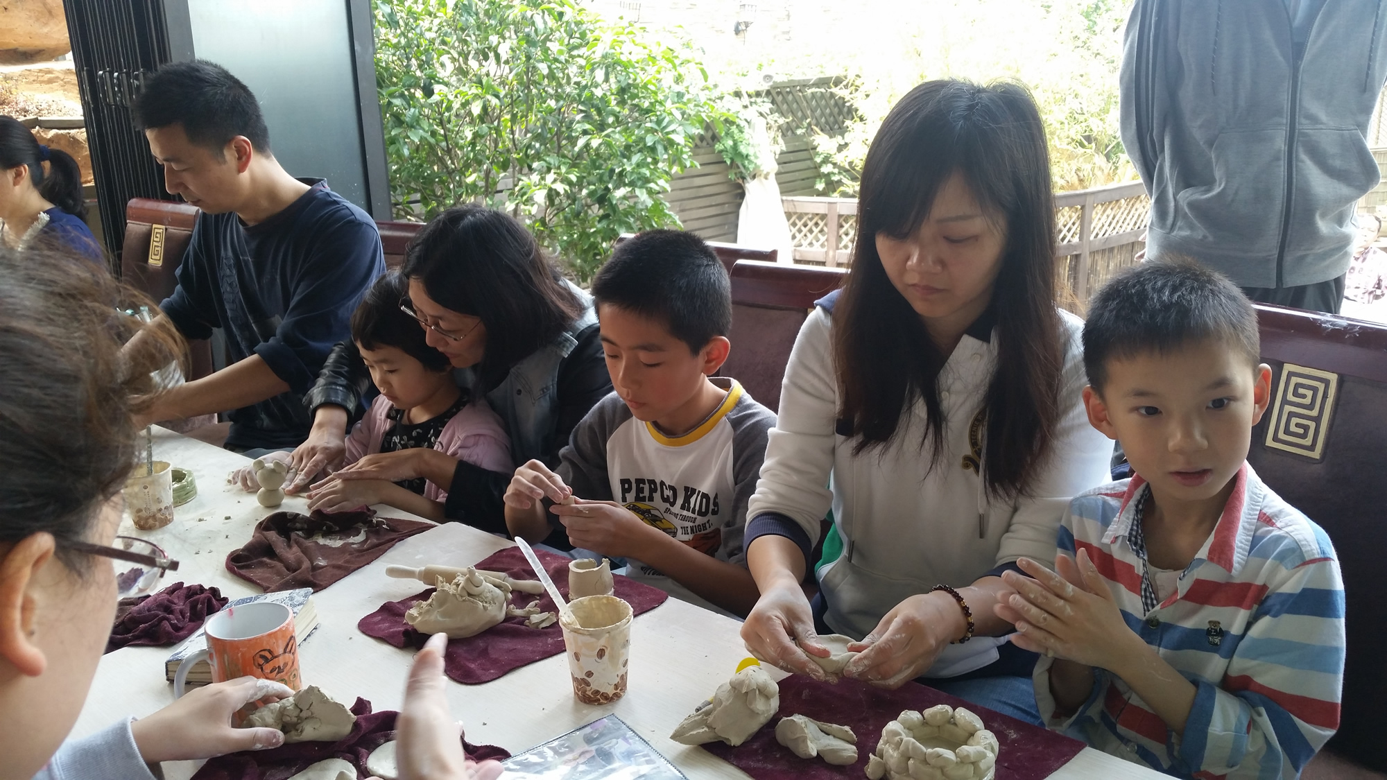 此次活动由学校工会反复思考和精心设计,为学校教职工及家庭人员量身定做。活动唤起了教职工的童年欢乐,也让小朋友们愉悦地探索属于他们的纯真世界。大家自由发挥想象,利用材料制作出各式造型——有拉坯出来的花瓶,有捏出长耳朵的小白兔,还有粘上花的笔筒……家长和孩子们随意发挥想象力,凭借别出心裁的创意及灵巧的双手,制造出一个个比任何豪华玩具都要珍贵的独一无二的作品。整个上午,陶吧内洋溢着轻松、愉悦、和睦的氛围。