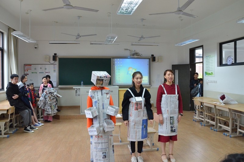 环保服装秀、我心目中的“环保社区”创意大比拼:都是利用报纸设计、制作,看一看家长和同学们如何玩转身边的废旧报纸,使其成为一件件的超级服装、一个个“环保社区”,参赛者以其丰富的想象力、创造力和表演力呈现出一件件精彩的作品,层出不穷的创意充分体现了环保、创新的理念。