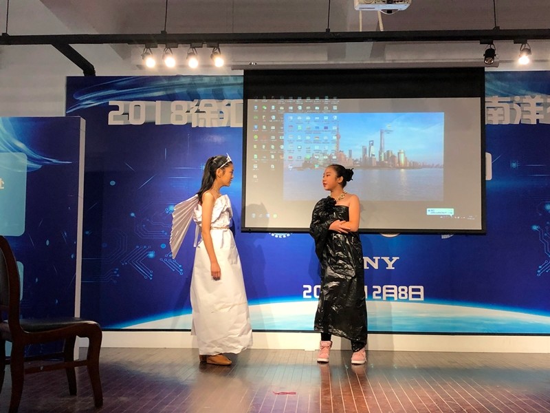 再说那“环保服装秀”版块,形形色色的服饰、动听的故事、精彩的表演引来观众阵阵掌声。南洋初级中学黄熠桦、韩妍妮、李玮菁同学的环保童话;向阳小学刘悠然、魏天一能量转化衣;石杨奕、金秋邑八音盒里的环保小天使等。