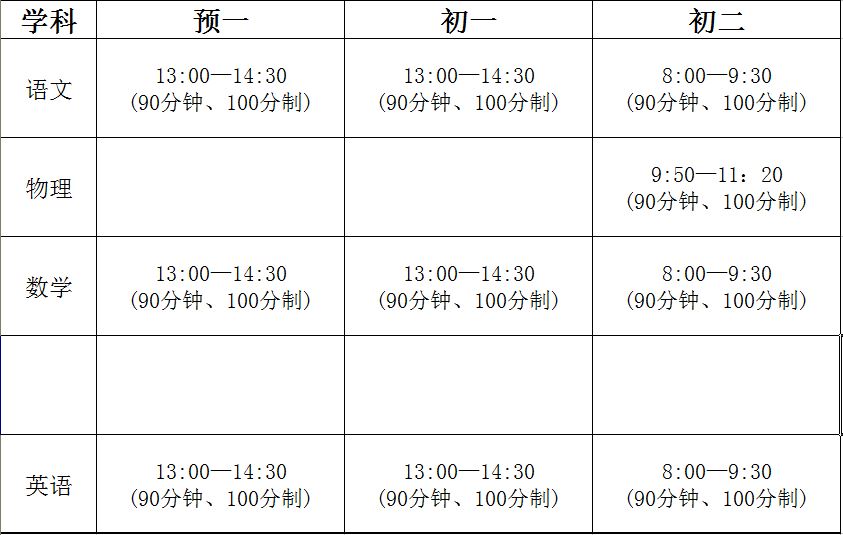 上海市南洋初级中学2014学年度第二学期期末考试时间安排表