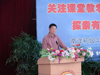 在教学工作会议上,帅俊平书记(代校长)进行了题为“关注课堂质量,探索有效教研”的主题工作汇报,介绍了学校在南洋高中的辐射带领下,以学生发展为本,把教学理念转为教学行动的努力和尝试。随后,英语教研组长孙宇进行了题为“夯实研训、促进发展、提高质量”的交流,回顾和探讨了教研组怎样实现教师和学生的共同发展的实践;七年级数学备课组长黄雪萍围绕“以学生发展为本,夯实课内外教学”的主题,交流了如何让课堂充满自信,如何走进学生的心灵,扎扎实实提升数学教学质量的成功历程,初三年级组长梅瑾交流了九年级“抓好年级管理,提高教育成效”的实实在在举措和深切的体会。