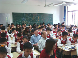 当天下午徐汇区教育局副局长沈韬、徐汇区人民政府教育督导室主任胡占才、徐汇区教育局中教科科长吴卫、副科长马春梅、斜土社区学校常务副校长周水仙和南洋初级中学关工委组长、老校长倪信芳等领导出席了学校的教学工作会议。区语文教学指导团专家、区教院部分教研员、我校派出教师对口支教的金山区罗星中学领导和部分教师、宝山区长江二中部分教师、南洋中学领导及部分教师、本校部分学生家长近40人于上午深入课堂观摩,区教研员和教师还一起参加了课后的评课活动。