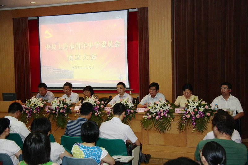 8月31日下午两点,中共上海市南洋中学委员会成立大会隆重召开。区教育党工委书记王懋功宣读南中党委成立的决定,区教育党工委副书记、教育局局长庄小凤主持大会。区教育党工委副书记、纪工委书记朱龙霞,区教育局副局长沈建华等出席成立大会。