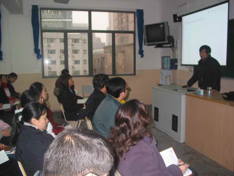 张斌辉老师这次讲座的课题是“新授课教学设计及教学”。他结合二期课改的教学实践指出,现在教材有变化,教师的教学形式也要跟着变化。现在的教学与现实生活有密切的联系。张老师深入浅出地介绍了新授课过程的框架结构,从导入、形成、巩固、小结四方面,用合理和不合理的教学设计案例,阐述了如何使学生的知识技能、过程方法与情感、态度、价值观三维目标协调发展。