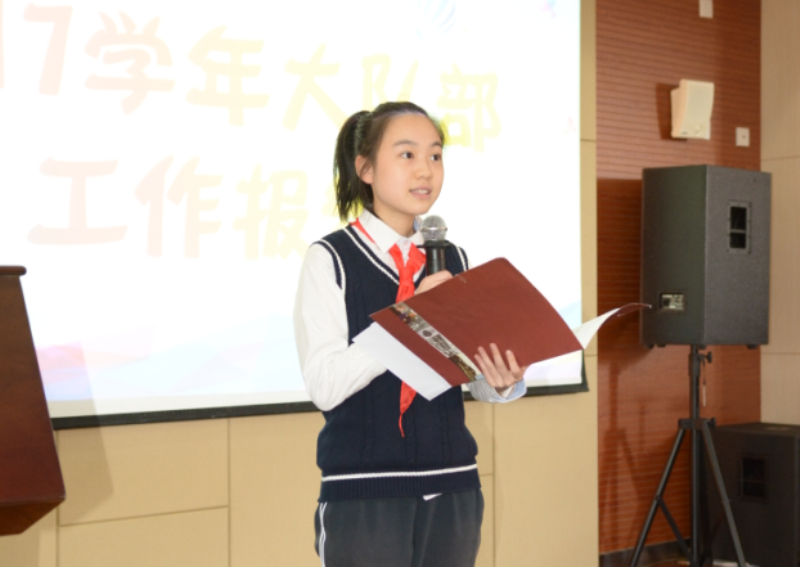 大会在队员们激昂的少先队队歌声中正式开幕。周校长向本次少代会致贺词,鼓励全校少先队员学习好少代会精神,积极参加少先队的各项活动,为学校的少先队组织增光添彩!随后,上一届大队主席张露嘉队员作了2017学年的少先队工作总结。光阴如白驹过隙,精彩的点滴汇聚成了我们过去的一年,回顾收获,展望更加美丽的下一年。