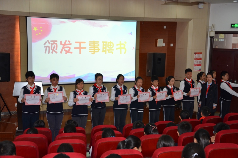 本次少代会最重要的环节当属大队部施老师宣布了新一届大队委员及干事的名单。一条杠杠代表着一份期望,传达着一份信任,更肩负着一份责任。9名大队委员纷纷上台,由敬爱的校长亲自为他们授标志。同样地,大队干事也精神气饱满,拿着自己的干事聘书,他们将做大队部的好助手和后备军!选举出的新一届大队主席柯智乐宣读了对全体少先队员的倡导书,他即将引领大队部全体队员为学校服务,做南洋最可靠的小主人。