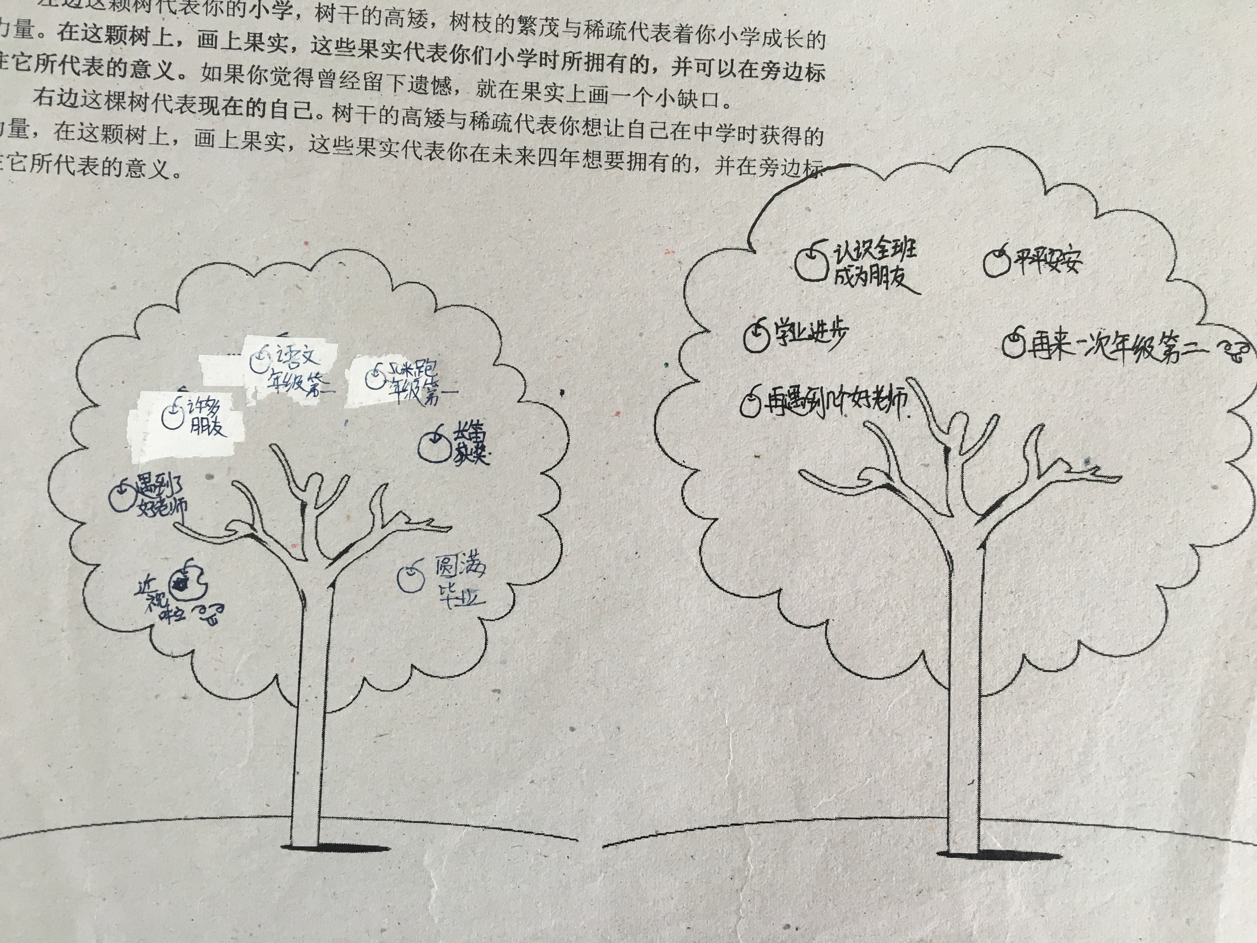 不少学生所绘制的树上画满了果实,表达了他们对初中生活的美好向往。