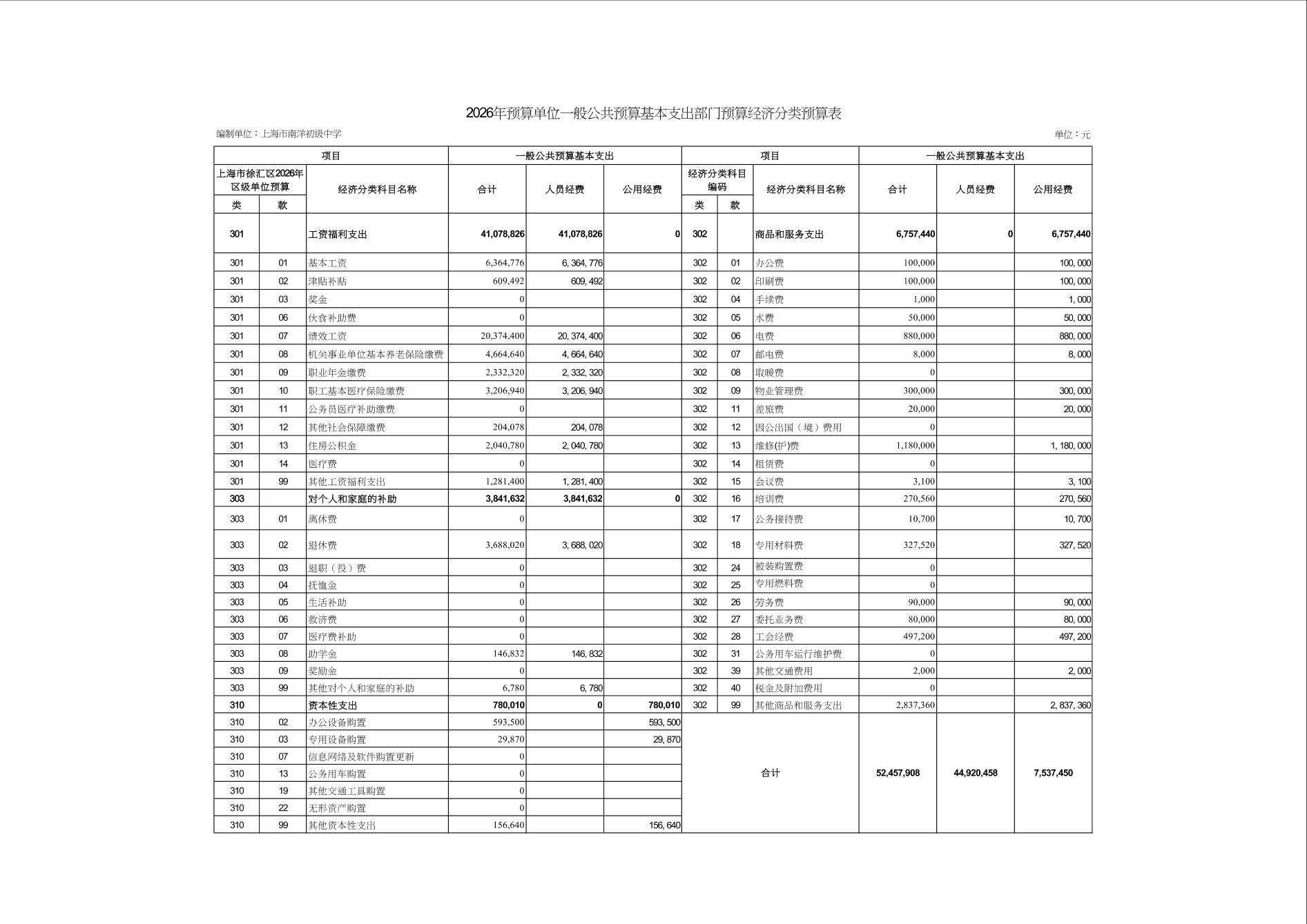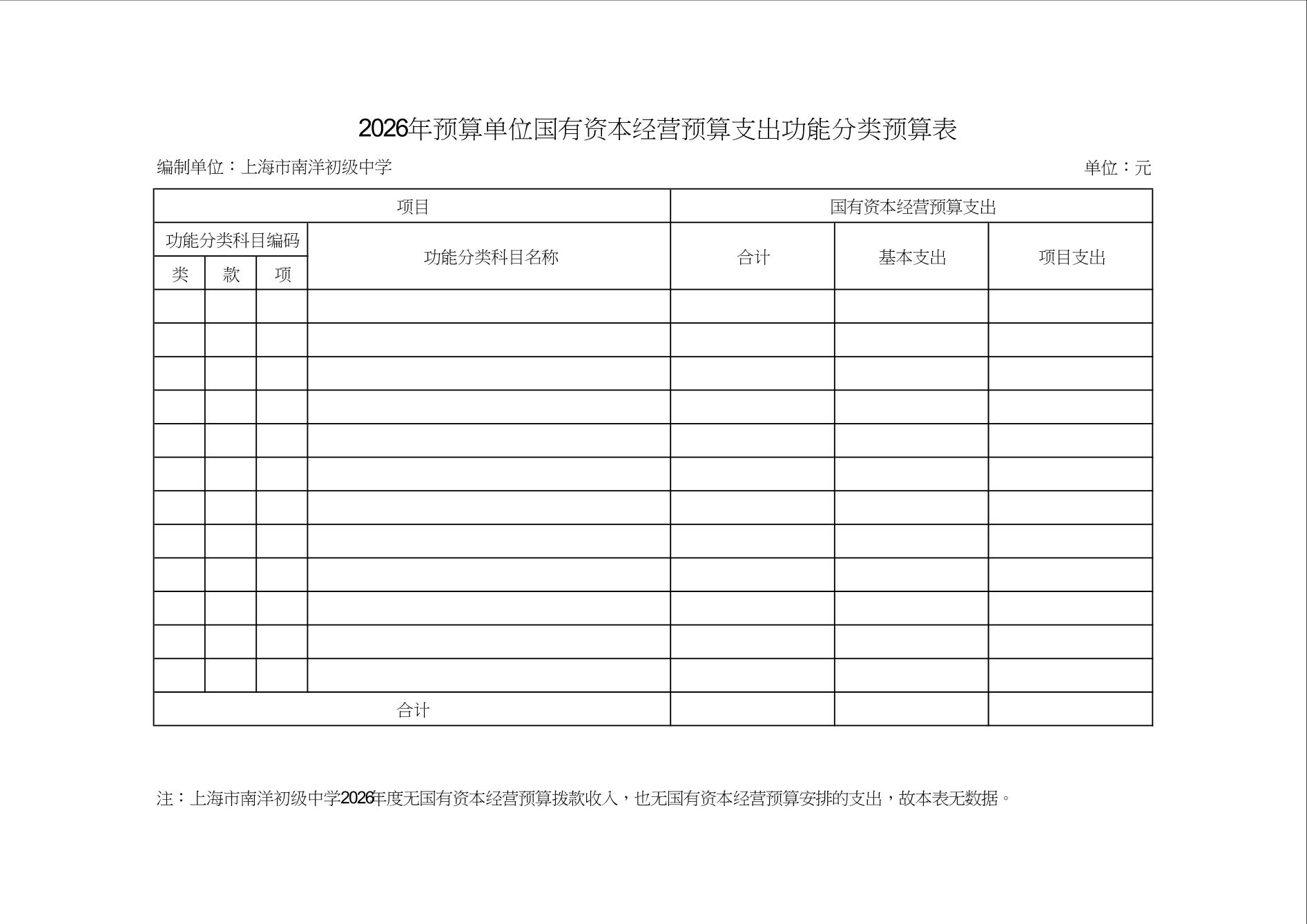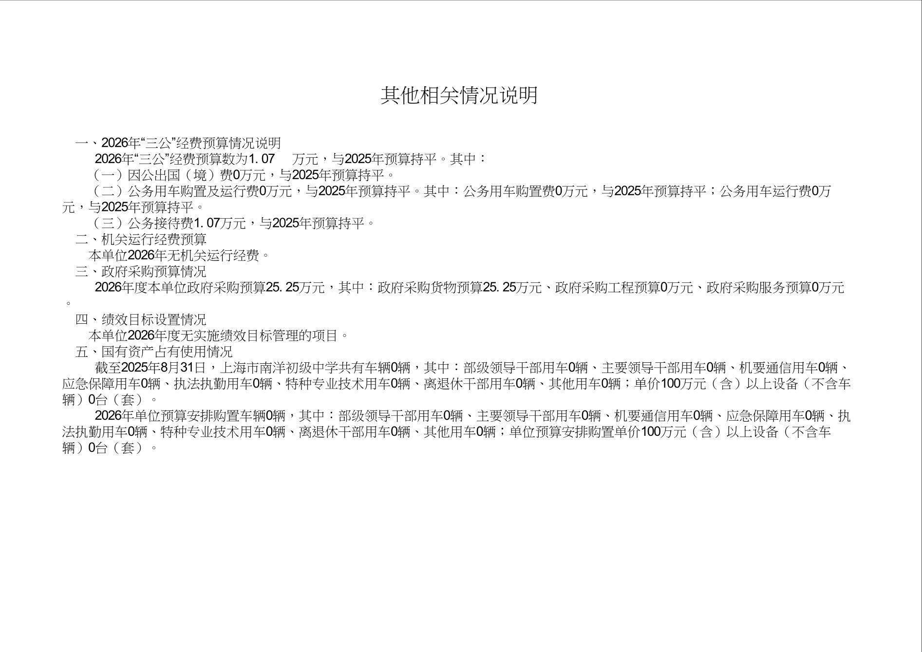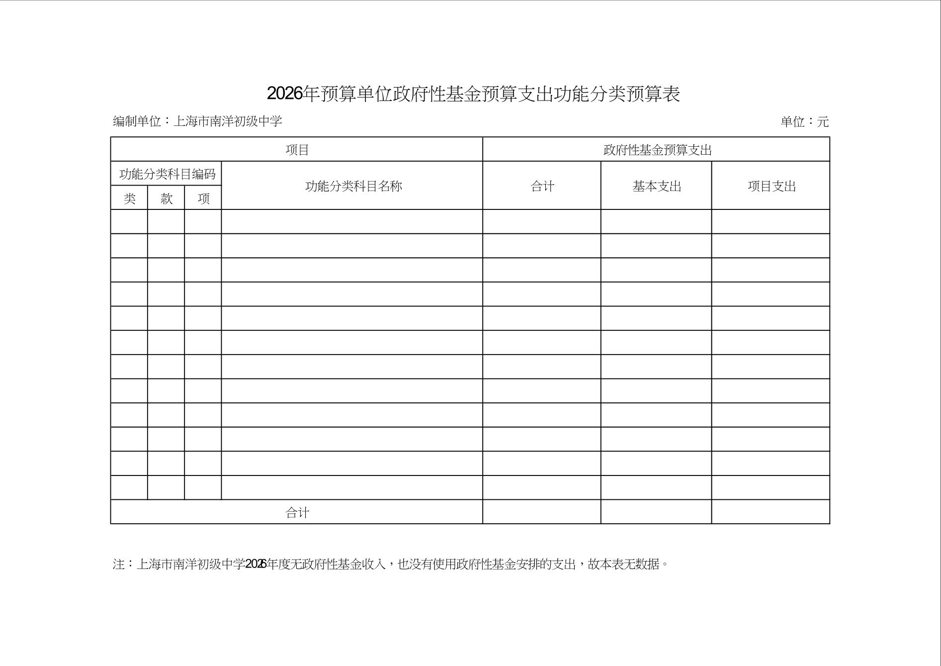 上海市南洋初级中学2026年度单位预算