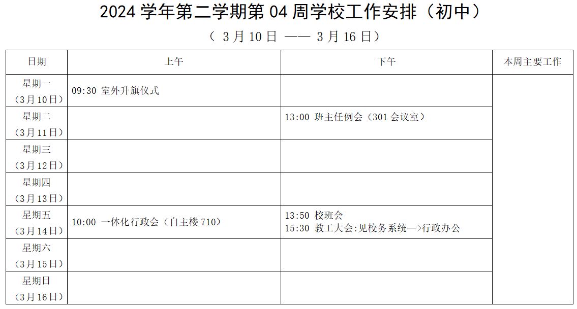 2025-04-182024学年第二学期第10周学校工作安排(初中)